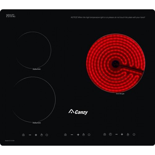 Bếp điện từ Canzy CZ-323IH sử dụng mặt kính Eurokera ( K+) sản xuất tại Pháp có khả năng chịu lực, chịu nhiệt và chống trầy xước cao. Kính liền nguyên tấm có màu đen, không sinh ra khí CO hay CO2 khi nấu và dễ dàng vệ sinh, lau chùi. Bếp có thiết kế hình vuông gồm 2 vùng nấu từ và 1 vùng nấu hồng ngoại được bố trí khoa học phù hợp với mọi loại nồi nấu. Linh kiện bên vùng nấu hồng ngoại là mâm EGO Highlight( nhập khẩu từ Đức) có 2 vòng tự động ngắt nhiệt riêng biệt thích hợp cho việc sử dụng nồi có đường kính nhỏ tới lớn, có thể tùy chọn mức độ công suất giúp tiết kiệm điện năng. Ngoài ra vùng nấu hồng ngoại không kén nồi và có khả năng nướng đồ trực tiếp trên mặt bếp nên bạn có thể sử dụng để nướng bánh mì, hành, tỏi,…
