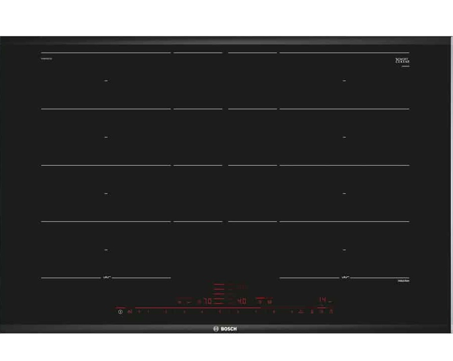 Với kích thước 816 × 527 × 51 mm, bếp nằm gọn gàng trong mọi mặt bàn bếp tiêu chuẩn mà vẫn đảm bảo không gian nấu rộng mở. Các vùng nấu được bố trí khoa học, khoảng cách hợp lý giúp đặt nhiều nồi chảo cùng lúc mà không bị chật chội. Đặc biệt, Bosch thiết kế hai vùng FlexInduction lớn cho phép nấu linh hoạt, thích hợp với cả nồi nhỏ, nồi dài hoặc chảo lớn – một ưu điểm lớn cho gia đình thường xuyên nấu nhiều món hoặc sử dụng dụng cụ nấu kích thước lớn.