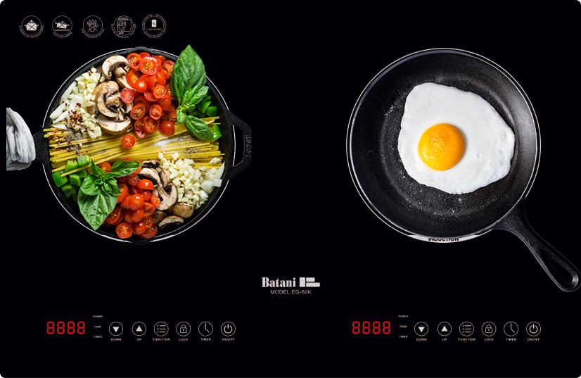 Bếp từ Batani EG-60K gồm 2 vùng nấu với tổng công suất chia sẻ là 4000W. Vùng nấu trái với công suất là 2000W. Vùng nấu phải với công suất là 2000W. Chỉ trong chốc lát sau khi kích hoạt tính năng này, nhiệt lượng trên vùng nấu từ tăng lên công suất tương đương với mức nhiệt lượng lớn nhất. Do đó, các món ăn được nấu chín nhanh hơn, tiết kiệm thời gian vào bếp cho chị em nội trợ.