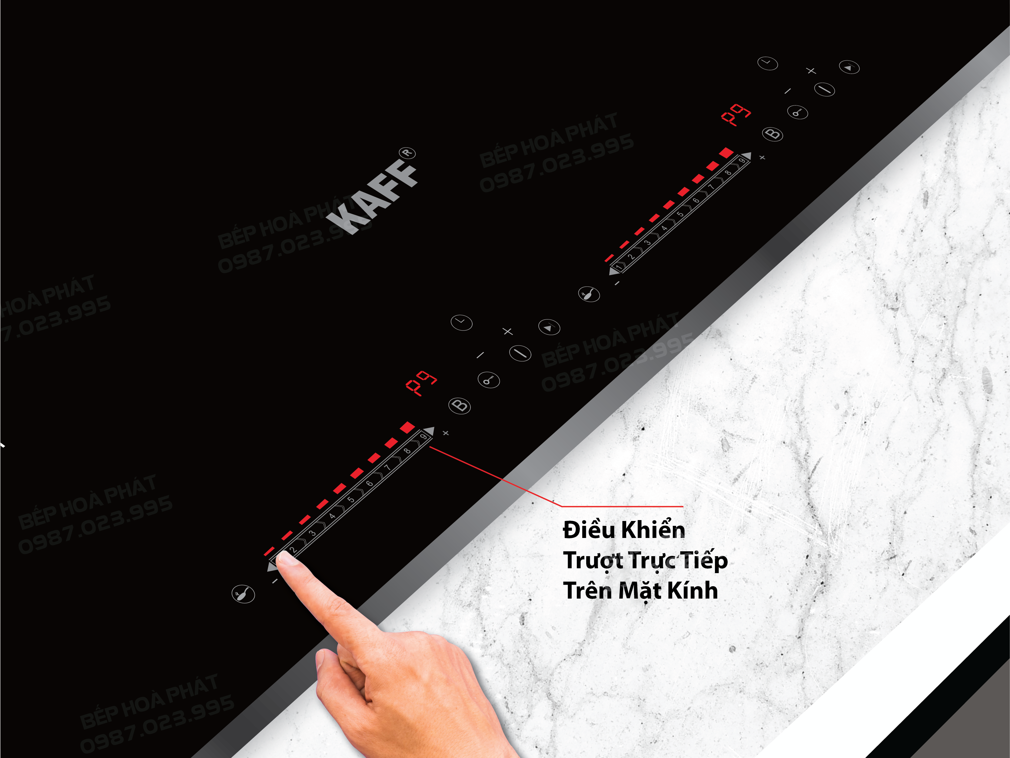 - Bàn phím điều khiển dạng trượt slide của bếp từ đôi KAFF KF - FL 1098II kết hợp dạng cộng trừ thiết kế độc lập với 9 mức công suất giúp cho chị em sử dụng bếp với các thao tác nấu nướng dễ dàng hơn bao giờ hết. Bàn phím điều chỉnh siêu nhạy dùng được kể cả khi tay ướt, cho các mức nấu giúp cho công việc nấu ăn trở nên đơn giản hiệu quả và nhanh chóng.